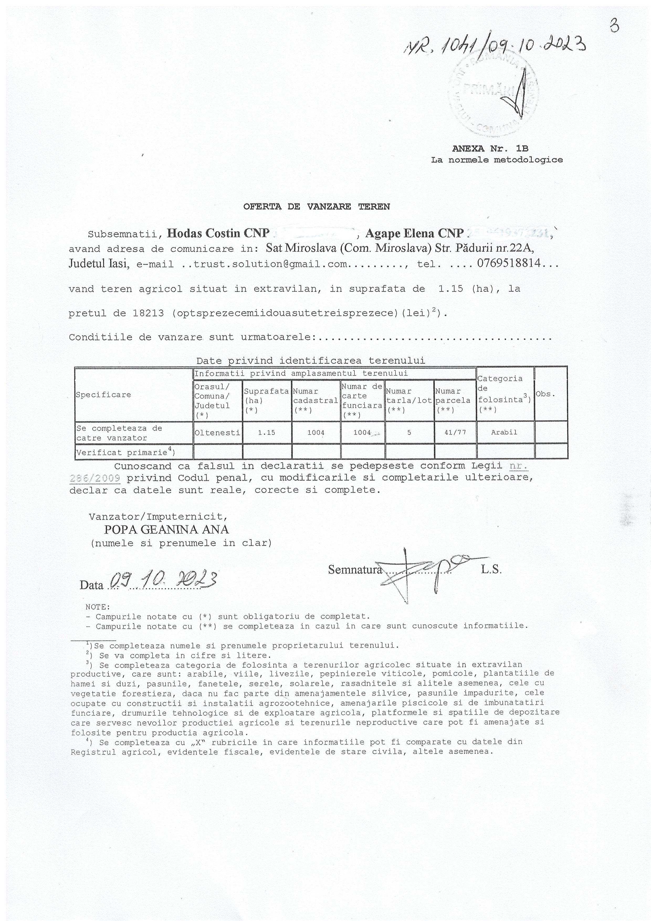 Image Oferta vanzare teren Hodas Costin (442 downloads) Popular Download (jpg, 1.36 MB)